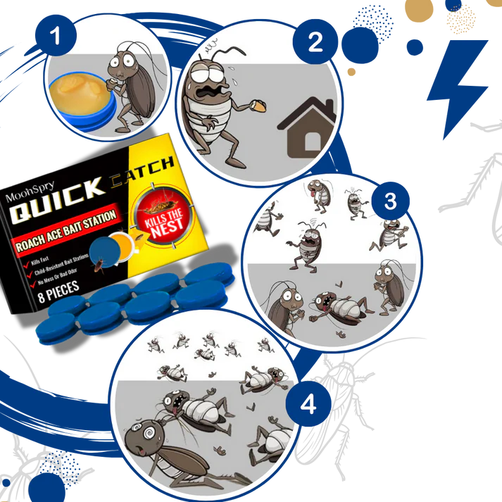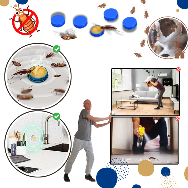 Ces petites capsules bleues contiennent un gel ultra-attractif qui attire les cafards comme un aimant. Une fois mangé, le poison agit lentement pour qu’ils contaminent le reste de la colonie. Résultat : plus d'invasion, plus de stress. En plus, tu n’as rien à faire, pas besoin d'électricité, ni d’entretien. Juste poser, coller, oublier… et voir les résultats.