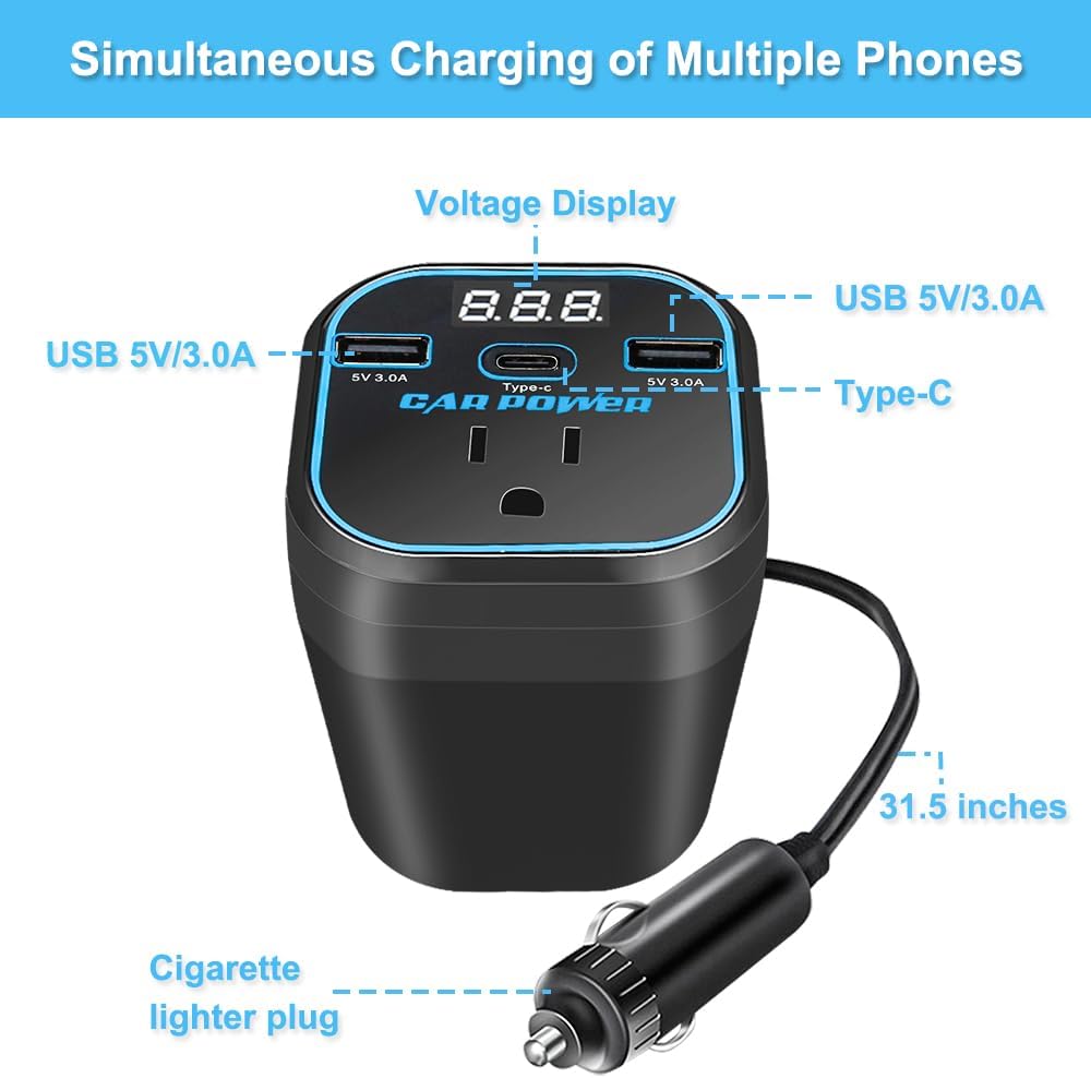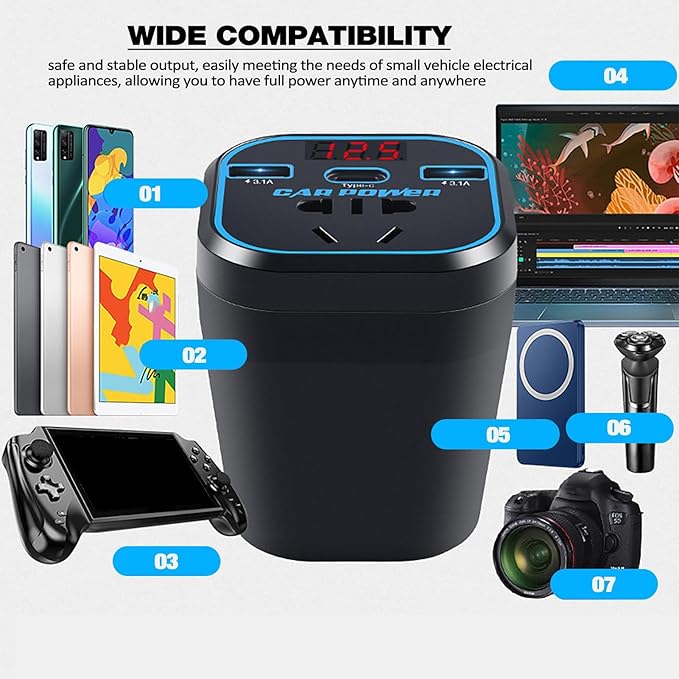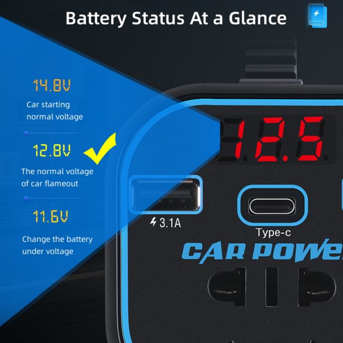 Grâce à ce convertisseur de puissance multifonction, branchez et rechargez vos appareils électroniques directement depuis votre voiture – que ce soit en 12V ou 24V.